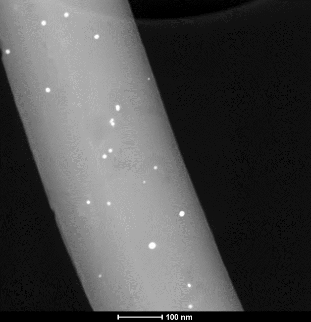 Electrospinning enables the fabrication of highly porous nanofibrous materials whose structure can be tuned by the preparation method – whether from a solution, colloid, or suspension. The team demonstrated that these structural differences directly influence the size of platinum particles after impregnation of the support with the active component, which has a crucial impact on catalytic performance. In oxidation tests of model pollutants such as toluene, acetone, and ethanol, it was shown that even a small change in the average platinum nanoparticle size from 9 to 11 nm leads to a marked increase in catalytic activity. An important finding was that during catalytic experiments, the formation of so-called “hot spots” on the catalyst surface causes gradual sintering, i.e., coalescence of platinum nanoparticles, which paradoxically further enhances the oxidation efficiency.