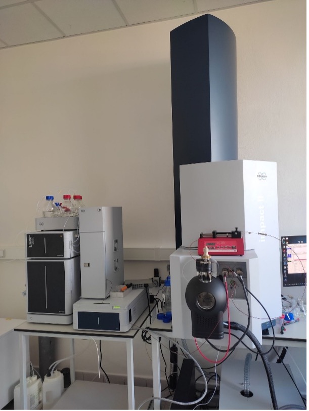 HPLC-HRMS/MS – Kapalinový chromatograf Dionex Ultimate 3000 (ThermoScientific) ve spojení s vysokorozlišujícím hmotnostním spektrometrem micrOTOF-Q III (Bruker Daltonik). Ionizace elektrosprejem (ESI) nebo chemickou ionizaci za atmosférického tlaku (APCI) s možností měření