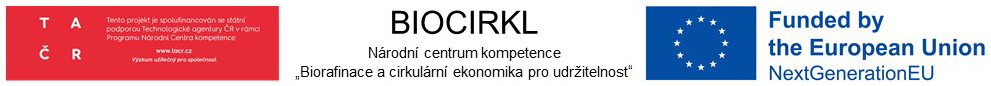 Projekt Národní centrum kompetence „Biorafinace a cirkulární ekonomika pro udržitelnost” (TN02000044) je spolufinancován se státní podporou Technologické agentury ČR v rámci Programu na podporu aplikovaného výzkumu, experimentálního vývoje a inovací Národní centra kompetence. Tento projekt byl financován v rámci Národního plánu obnovy z evropského Nástroje pro oživení a odolnost.